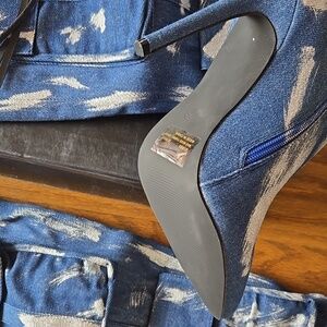 Step out in style with these denim with a splash of silver over knee women's boots.