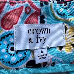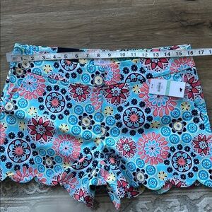 Crown and Ivy blue floral shorts scalloped hem front and back pockets size 8