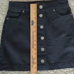 Stylish black denim skirt with a button-front design. Perfect for casual outings.