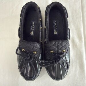 EUC Sperry Waterproof Rubber Quilted Fleece Loafers-Black-Women’s Size 6