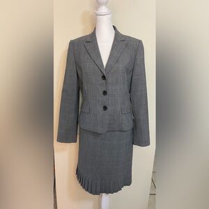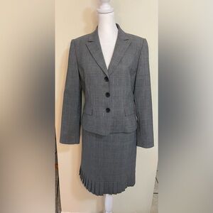 Tahari ASL Women’s 2 Pieces Suit Skirt/ Blazer Wool Blend Gray Plaid Size 6P