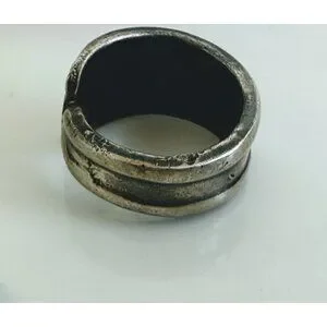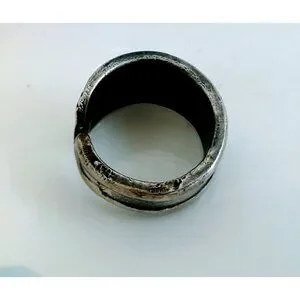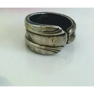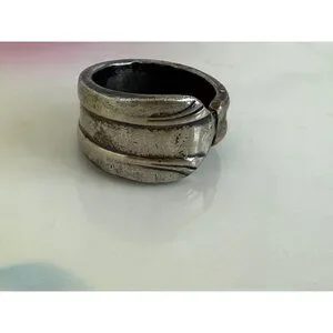 This vintage 60's sterling silver spoon ring is a unique accessory. Weighing 12.5 grams, this ring is crafted from sterling silver and fits size 8.5. Perfect for collectors and jewelry enthusiasts. This is not marked but tests for sterling silver. It is left unpolished but is in good wearable vintage condition.