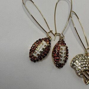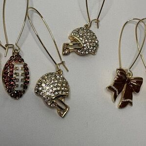 Women’s Dangle Football Earrings Faux Pave Crystals Football Helmet Bows NWOT Gold Tone. 3 pairs of gold tone earrings - one with footballs, one with helmets and one with football bows! Lightweight. New without tag. All items from smoke free, pet friendly home. Open to offers and bundle for a discount! Items cross posted.