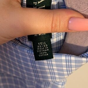 Vintage Lauren Ralph Lauren Men’s Blue and White Checkered Shirt