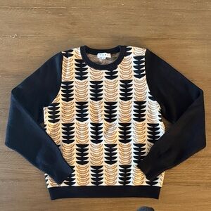 THML Black and Cream Patterned Crewneck Sweater
