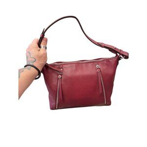 Elegant maroon shoulder handbag crafted from premium silver leather by Radley London. Perfect for stylish outings and daily use, it combines functionality with a chic design. This bag is a beauty and is in overall very good condition. No defects noted. SKU 9886