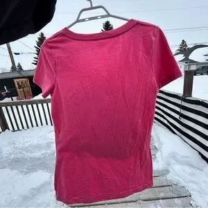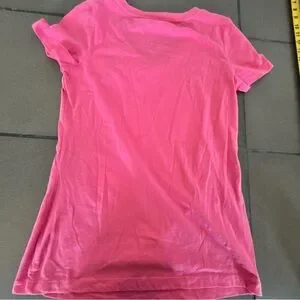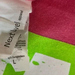 Bright pink and green tee with a playful design. Ideal for everyday style.
