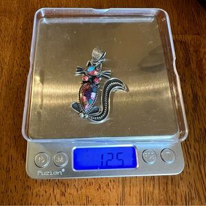 This sterling silver cat pendant features beautifully set dahlia composite stones in a sweet, eye-catching silhouette.