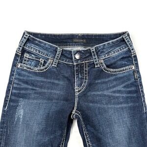 Silver Jeans Co Womens Dark Wash Straight Leg Thick Stitch Denim Size 28x30