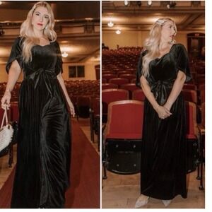 Ivy City Co Livi Jumpsuit Black Velvet Wide Leg Smocked Back XL LJIXLA3008