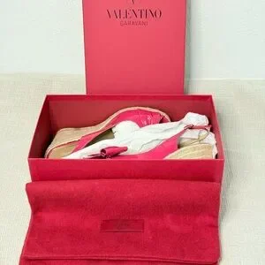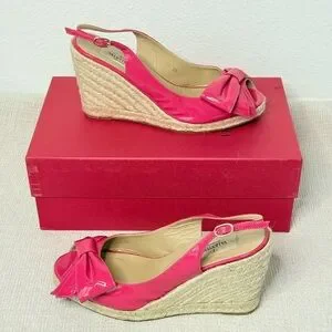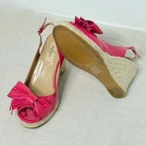 Valentino Garavani Fuchsia Patent Bow Wedge Sandals EU 38 US 8 Box