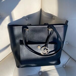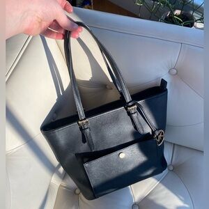 Michael Kors Jet Set 90s Minimalist Black Saffiano Leather Medium Tote w Gold