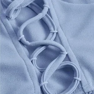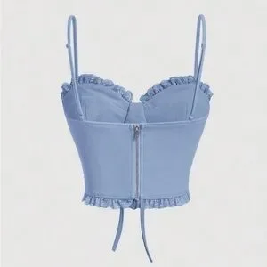 This elegant blue corset top features a stylish lace-up front and delicate ruffle details. Perfect for adding a touch of sophistication to your intimate wear collection. Never been worn. Measurements- Bust:36.6IN, Length:17.5IN