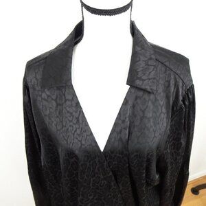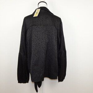 Michael Kors Cheetah Print Top Women's Plus Size 3X Black Long Sleeve Tie Detail
