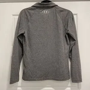 The Under Armour Women's S Tech Full Zip Jacket in Heather Gray is a stylish and functional activewear piece perfect for the colder seasons. Made from a knit fabric with long sleeves, this jacket features a full zip for easy wear, two front pockets, drawstring at neck and comfort. The gray color adds a versatile touch to your wardrobe, while the regular fit ensures a comfortable and flattering silhouette. Ideal for winter, fall, or spring, this jacket from the Under Armour HeatGear product line is a practical and fashionable choice for any active woman's closet.