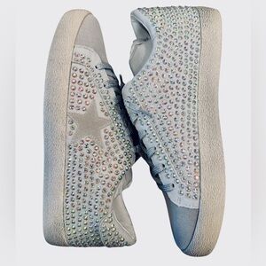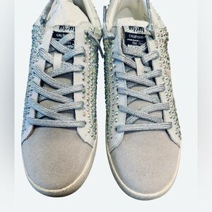 MiiM Rhinestone Sneakers Size 8.5 Gray White Lace Up Low Top Sparkle NEW