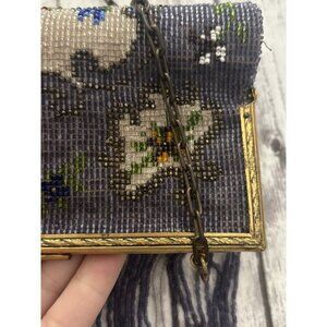 Beaded Purse Antique 1900s? Floral Basket Micro Bead Bag Handbag Purple Germany