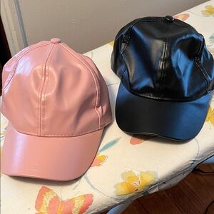 Set of two faux leather caps in pink and black. Stylish and versatile.