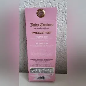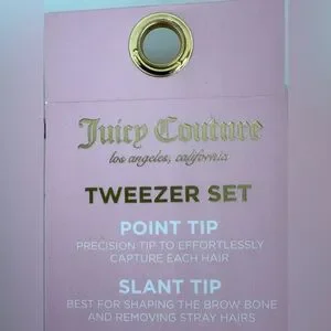 Juicy Couture 2-Piece Tweezer Set - Brand New in Package Add a glam touch to your beauty routine This adorable Juicy Couture set includes: • 1 slant tip tweezer - perfect for shaping brows. 1 point tip tweezer - ideal for precision hair removal t Signature Juicy pink design Cherry print packaging * New & unused Great for personal use, gifts, or travel. V Ships fast and carefully packaged.