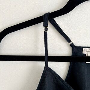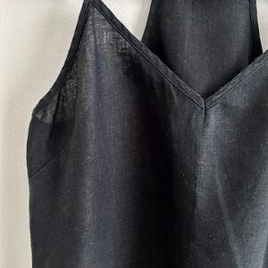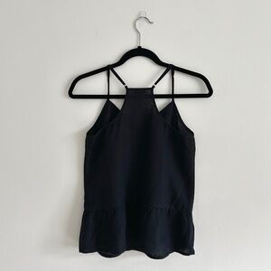 J. Crew Factory Black Linen Tank Top Peplum Spaghetti Straps Racerback Size 0
