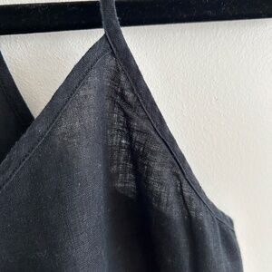 short sleeve, tank top, tank blouse, sleeveless, camisole, bare shoulder, blouse, black, monochromatic, neutral, tasteful, casual, going out, spring, summer, fall, modern, contemporary, girly, flirty, feminine, flowy, loose, coquette girl, flare, resort wear, lightweight, linen