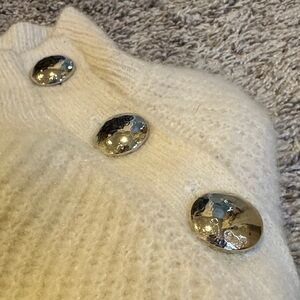 Sezane Cream and Black Striped Button Mohair Trudy Sweater/Jumper
