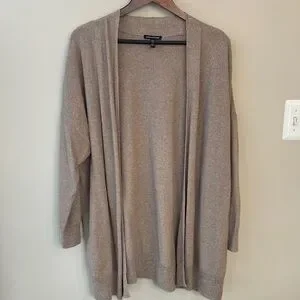 This Eileen Fisher Organic Linen Cotton Long Open Cardigan is in a flax cream color called cocoa. There is some intentional popcorn like texture from the linen blend, and some minor sights of wear. Beautiful natural piece, I only wore a handful of times.