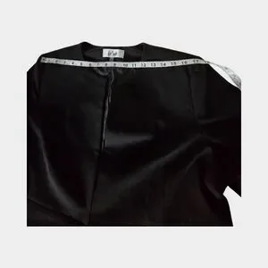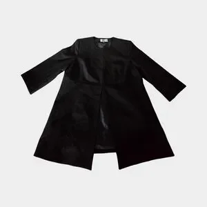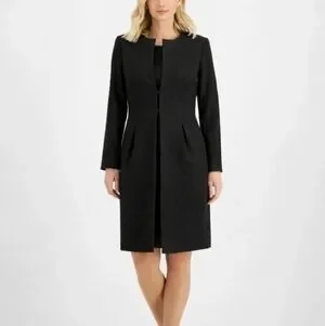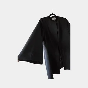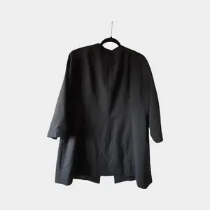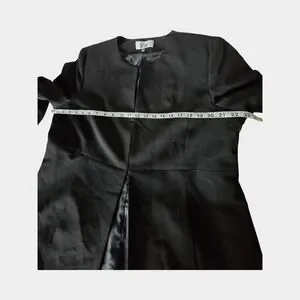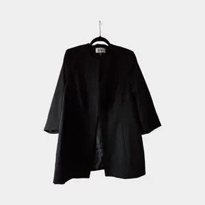 Le Suit Black Long Blazer Collarless Jacket Structured Career Minimalist Open 18