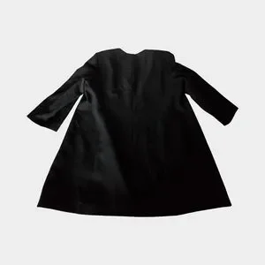 This timeless, structured piece features a clean, collarless neckline and a sleek open-front design for a polished, modern look. The longer length creates a flattering silhouette—perfect for layering over dresses, trousers, or office outfits.