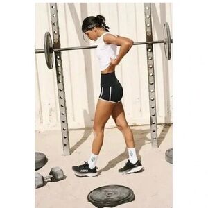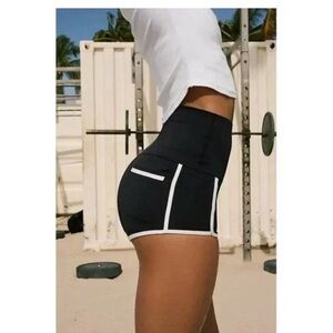 Sleek black shorts with white accents. Ideal for workouts. Comfortable and stylish.