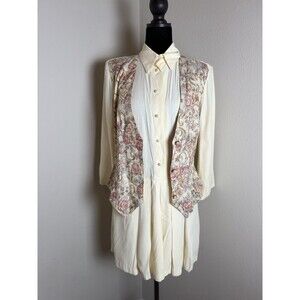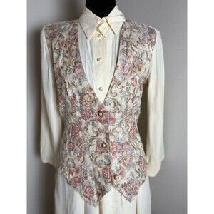 Vintage 90s AOLIB Floral Tapestry Vest Romper Cottagecore Prairie Cream Size3