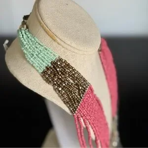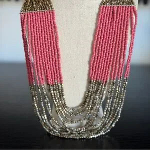 Multi-Strand Blue, Pink and Gold Beaded Statement Necklace