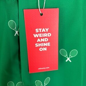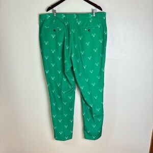 NWT Shinesty Golf Pants Green & White Tennis Racket Print Mens Sz 42 X 35