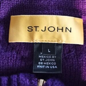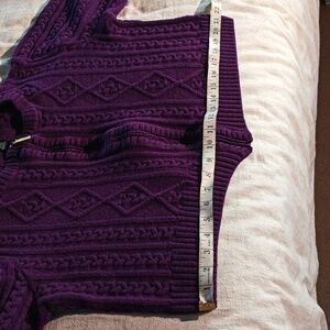 Vintage St John cropped purple zippered cable knit cardigan with 3/4 sleeves size large/ wool rayon blend