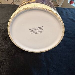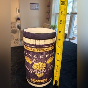 Add a touch of elegance to your home with this vintage style wine canister. Featuring a rich purple and cream design, it's perfect for wine enthusiasts and collectors.