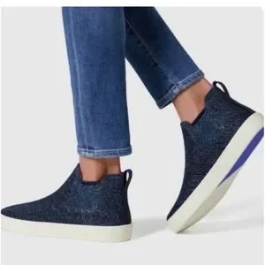 Rothy's Blue Metallic Lattice Stitch Chelsea Sneakers High Tops Shoe Size 12