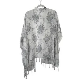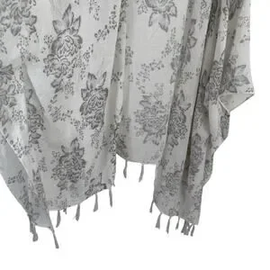 Natural Life Grey White Floral Kimono Wrap Shawl Boho Womens One Size