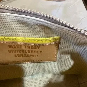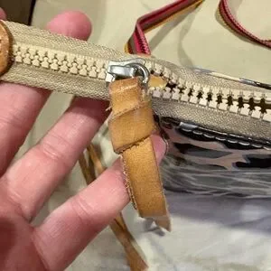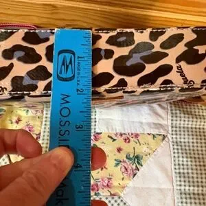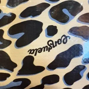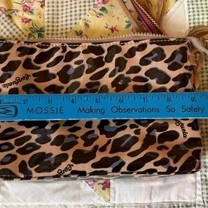 Leopard print crossbody bag with a pink and tan strap. Adds a bold touch to any outfit.
