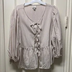 A New Day Beige Blouse with Bow Detail size large