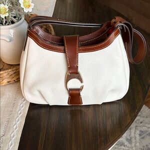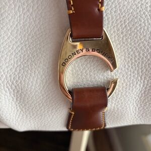 This Dooney & Bourke bag is stunning she has a few marks on front but the inside of her is clean. The handbag features a sophisticated white and brown leather design, perfect for any occasion. Its stylish look is complemented by high-quality craftsmanship, making it a must-have accessory. Please see all photos as they are a part of the description. She is a very nice bag?💕 there are no callouts on the straps they are clean as well! She will come with dust bag.