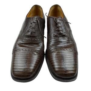 Julio Blanco Brown Lizard Embossed Oxford Dress Shoes 12