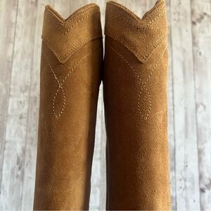 Frye Sacha At The Knee Suede Heeled Boots New Western Pointed Toe 6