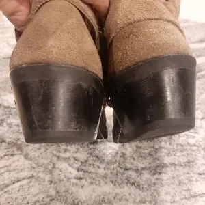 I bought these new off Poshmark back in 2023 for $100 and wore them a handful of times. the last two pictures are current status of the boots. In extremely good condition still!