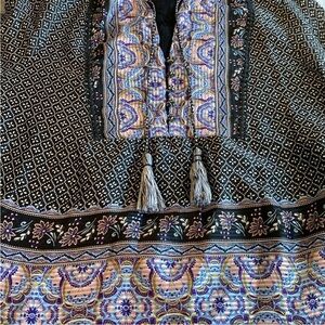AQUA Multi Mixed Media Patterned Long Sleeves Tie Neck Button Top Medium
