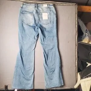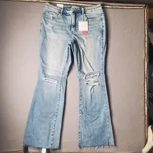 Keywords: Boho, Festival, Distressed Denim, Tummy Control, Flare Jeans, High Waisted, Raw Hem, Plus Size Fashion, Vervet Jeans, Streetwear, Casual, Light Wash