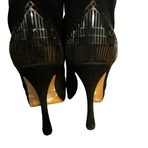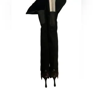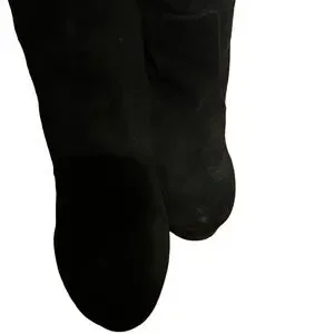 H by Halston Vintage Black Leather Suede over the Knee Platform Heel Boots 7.5