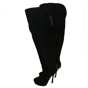 Halston Vintage Black Leather Suede over the Knee Platform Heel Boots 7.5. 4” heels. Great vintage condition, some wear shown inside boots and on soles. Very minor scuffing near toes.