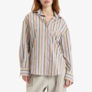 Faithfull The Brand Sz M Oversized Organic Cotton Striped Dress Shirt Blouse
