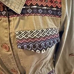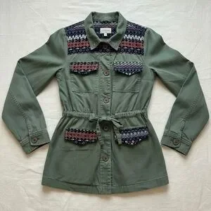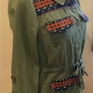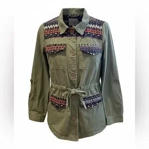 Modcloth Olive/ Army Green Utility Jacket with Patterned Accents Tag Size Medium