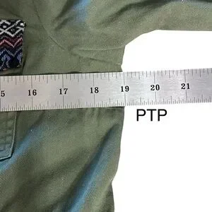 ModCloth army green utility jacket in women’s size Medium. PTP=19”